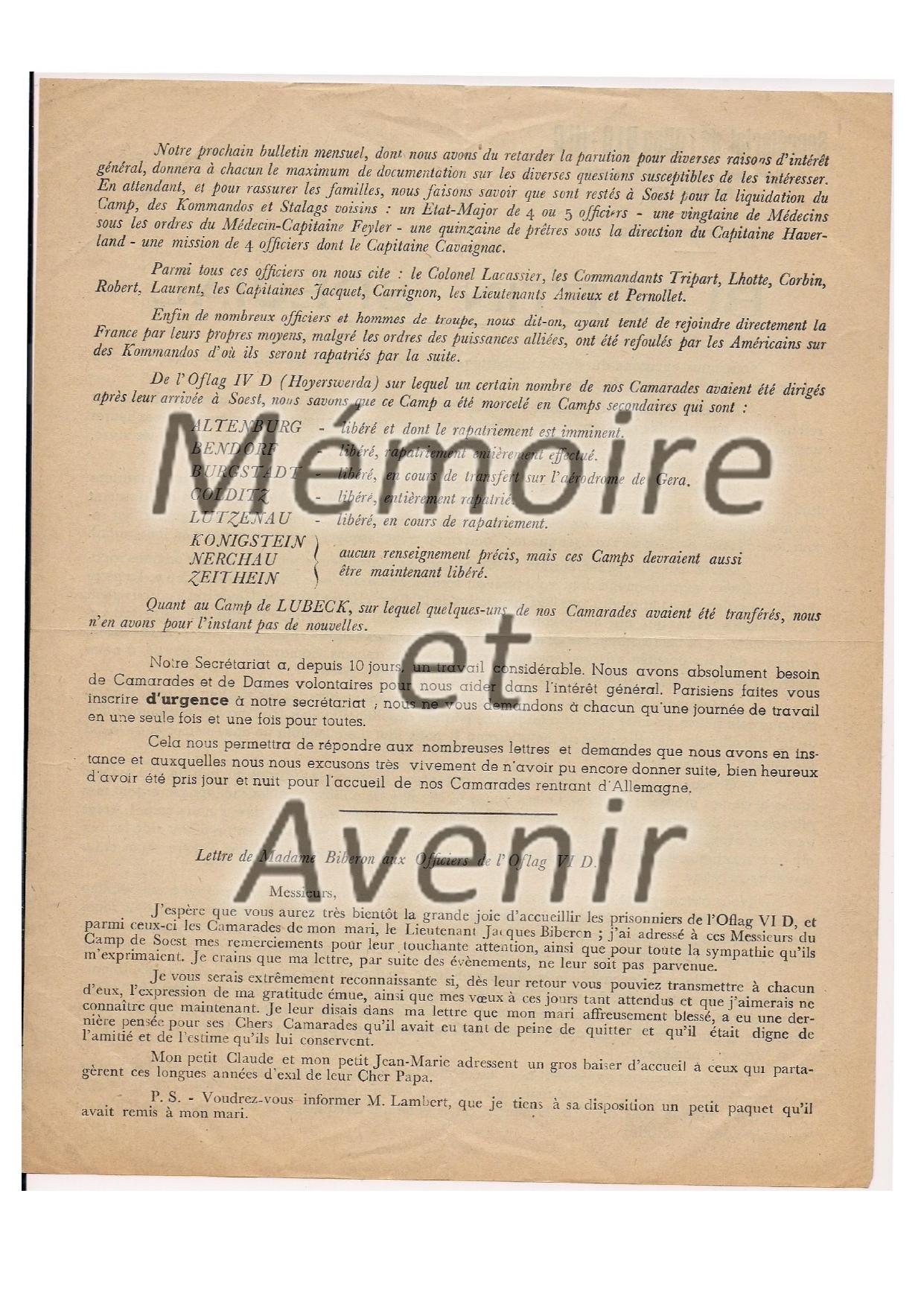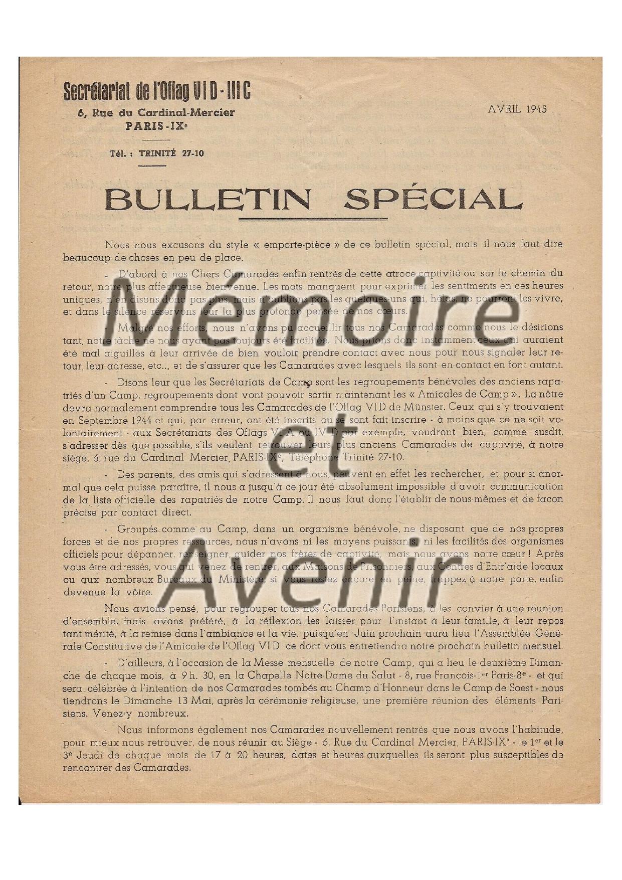 Bulletin spécial Oflag VID-IIIC - avril 1945