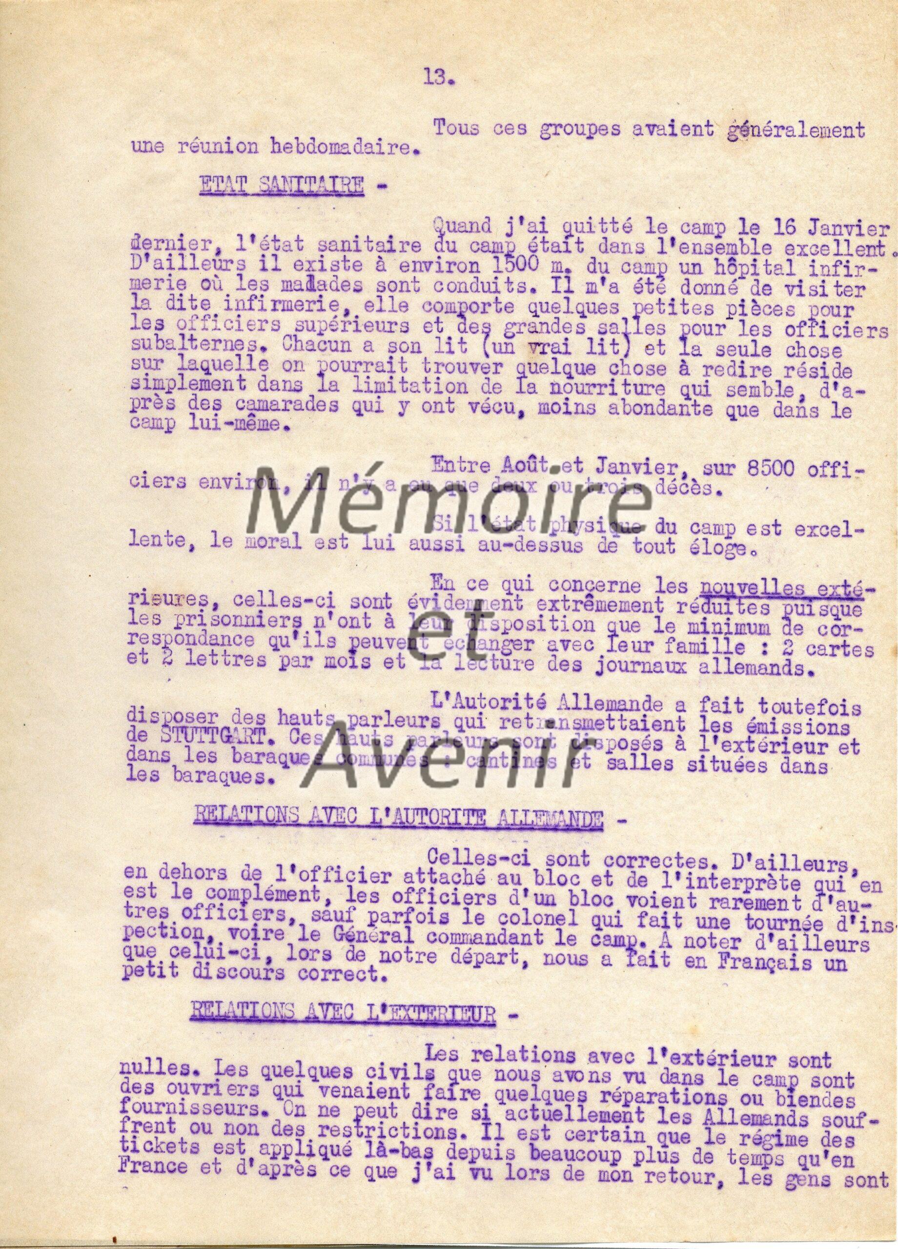 Description de l'Oflag XIIIA - 15 février 1941
