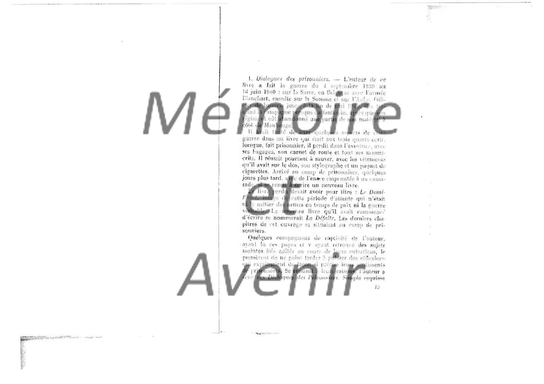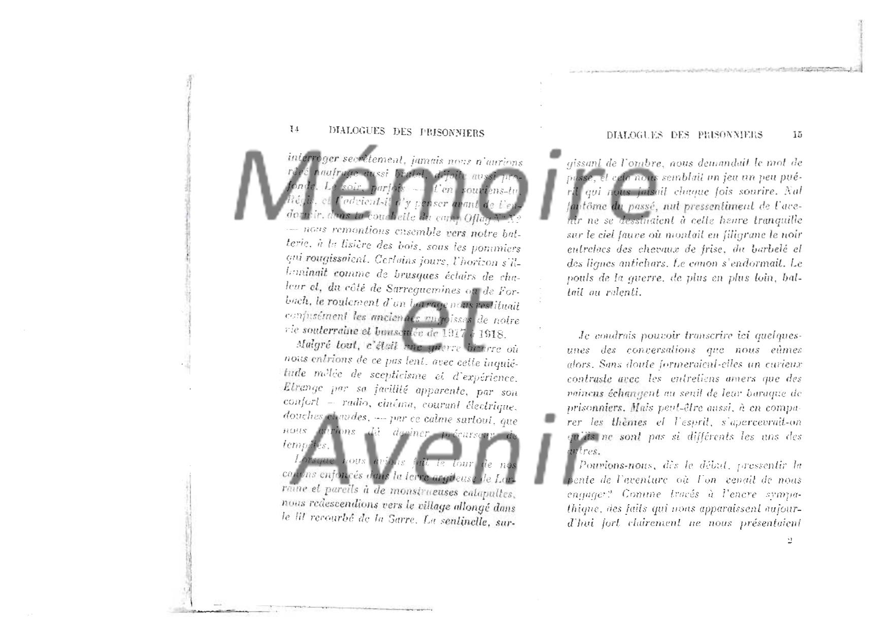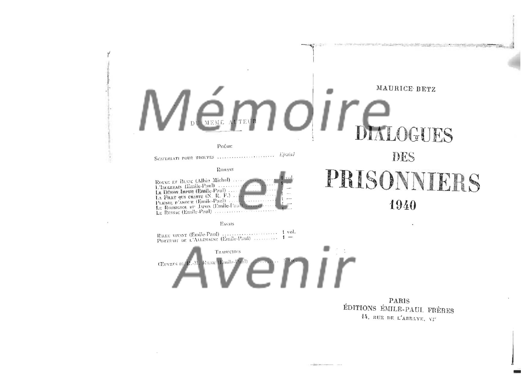 "Dialogue de prisonniers 1940" - Maurice BETZ - dialogue de 7 officiers que le hasard a réunis en août 40 dans un camp de triage (Ausleselager)