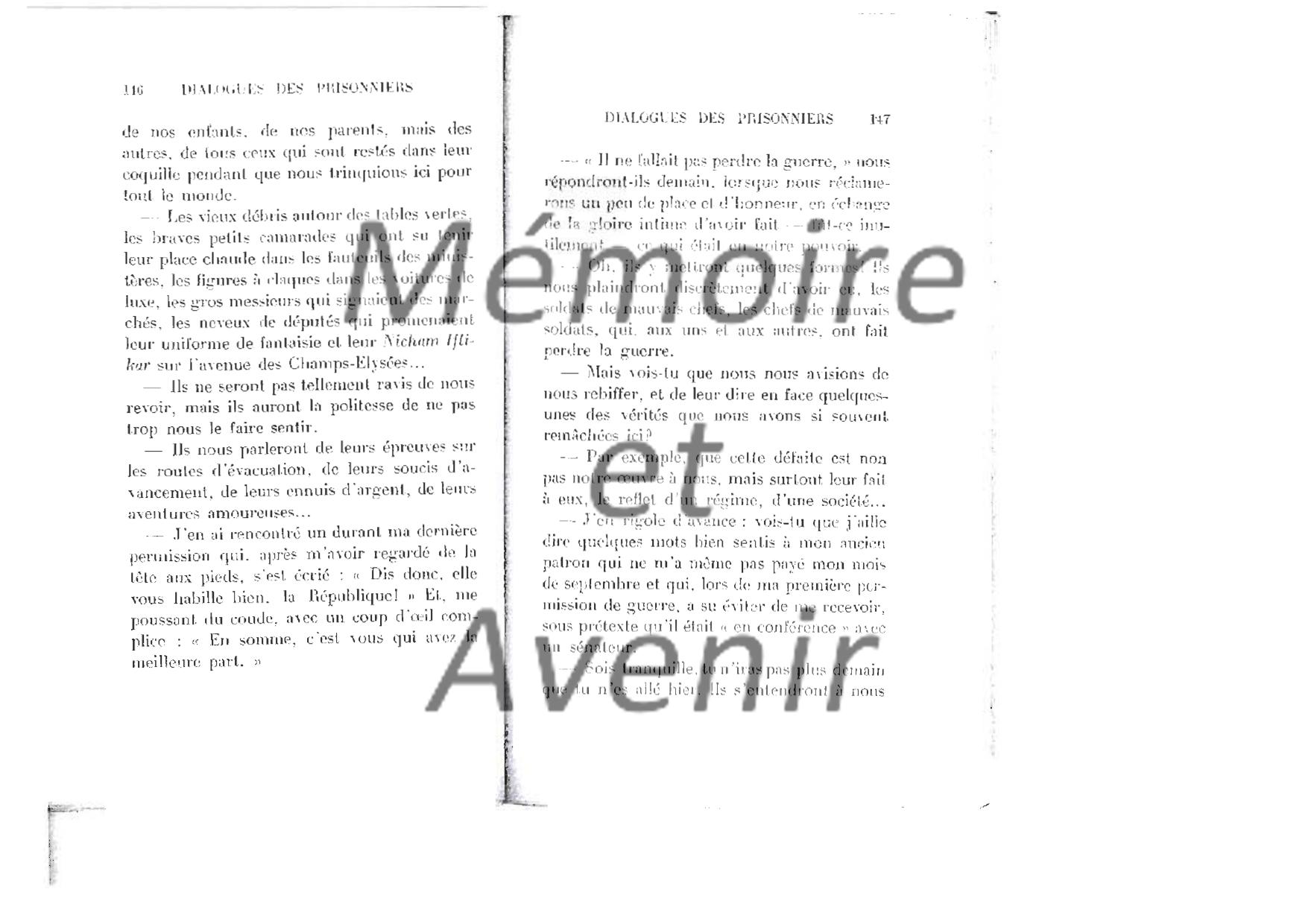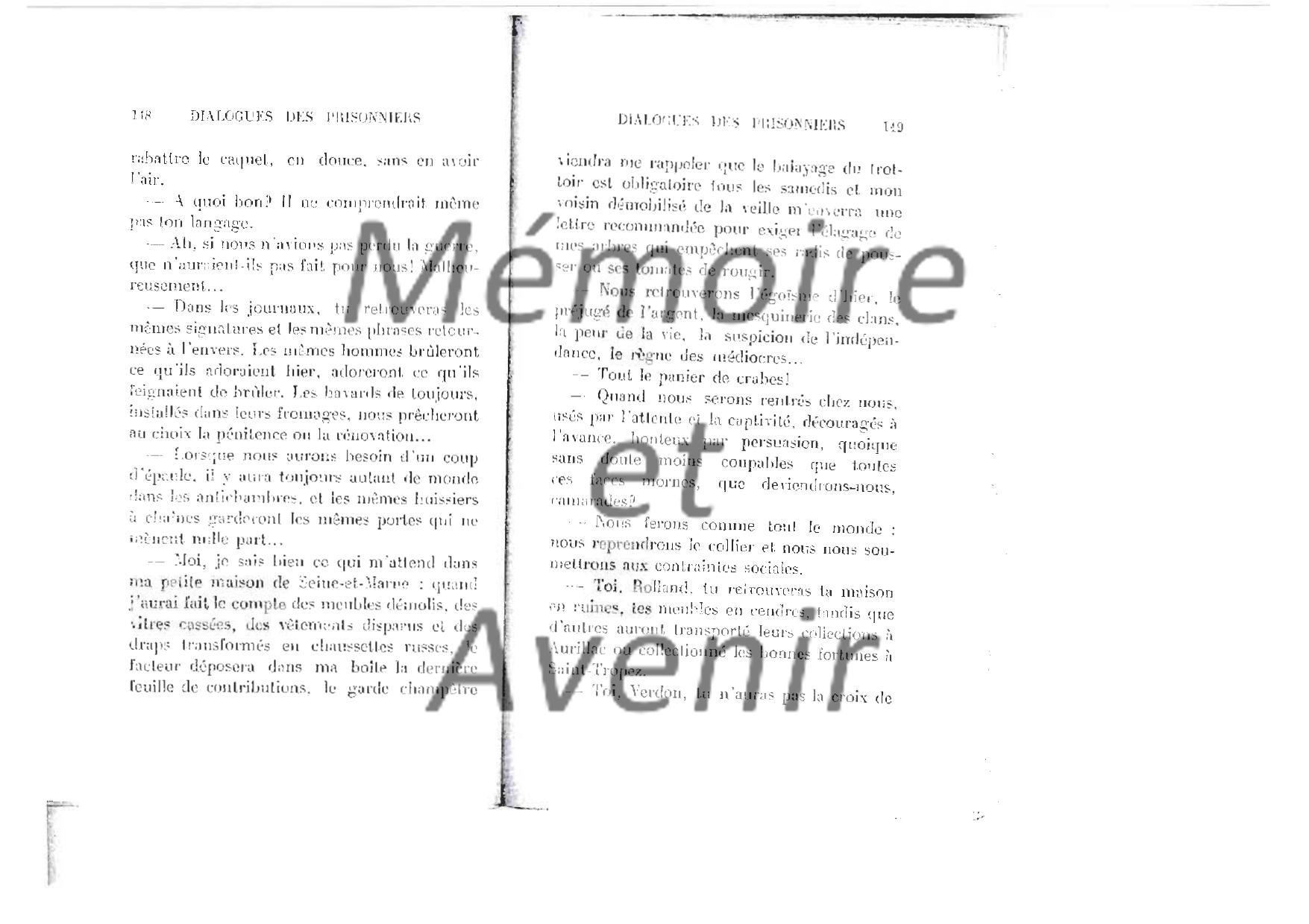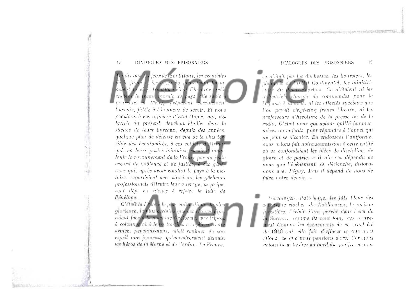"Dialogue de prisonniers 1940" - Maurice BETZ - dialogue de 7 officiers que le hasard a réunis en août 40 dans un camp de triage (Ausleselager)