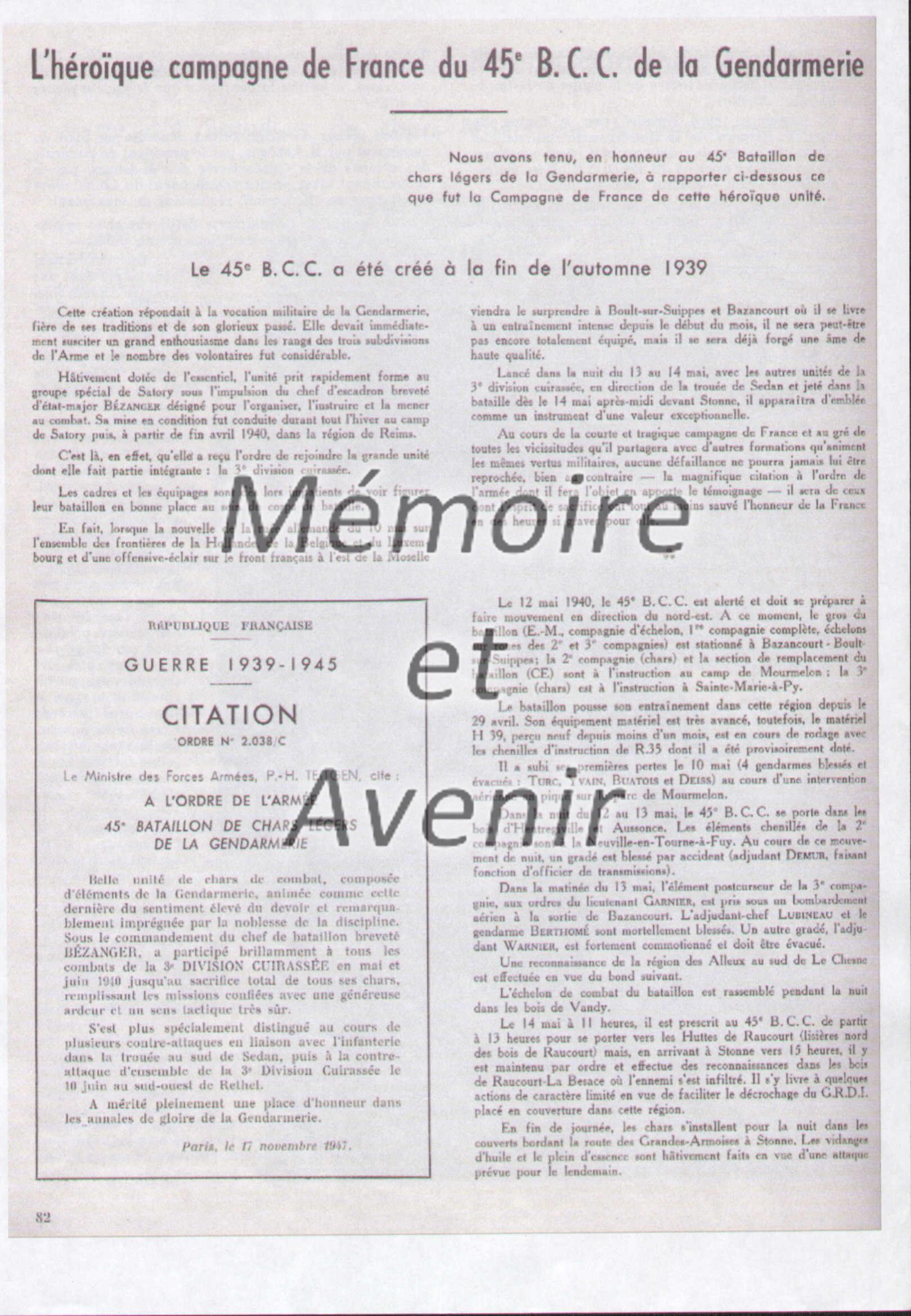 Extrait de la revue d'étude et d'informations de la gendarmerie nationale no 41 [1959] p. 82-87